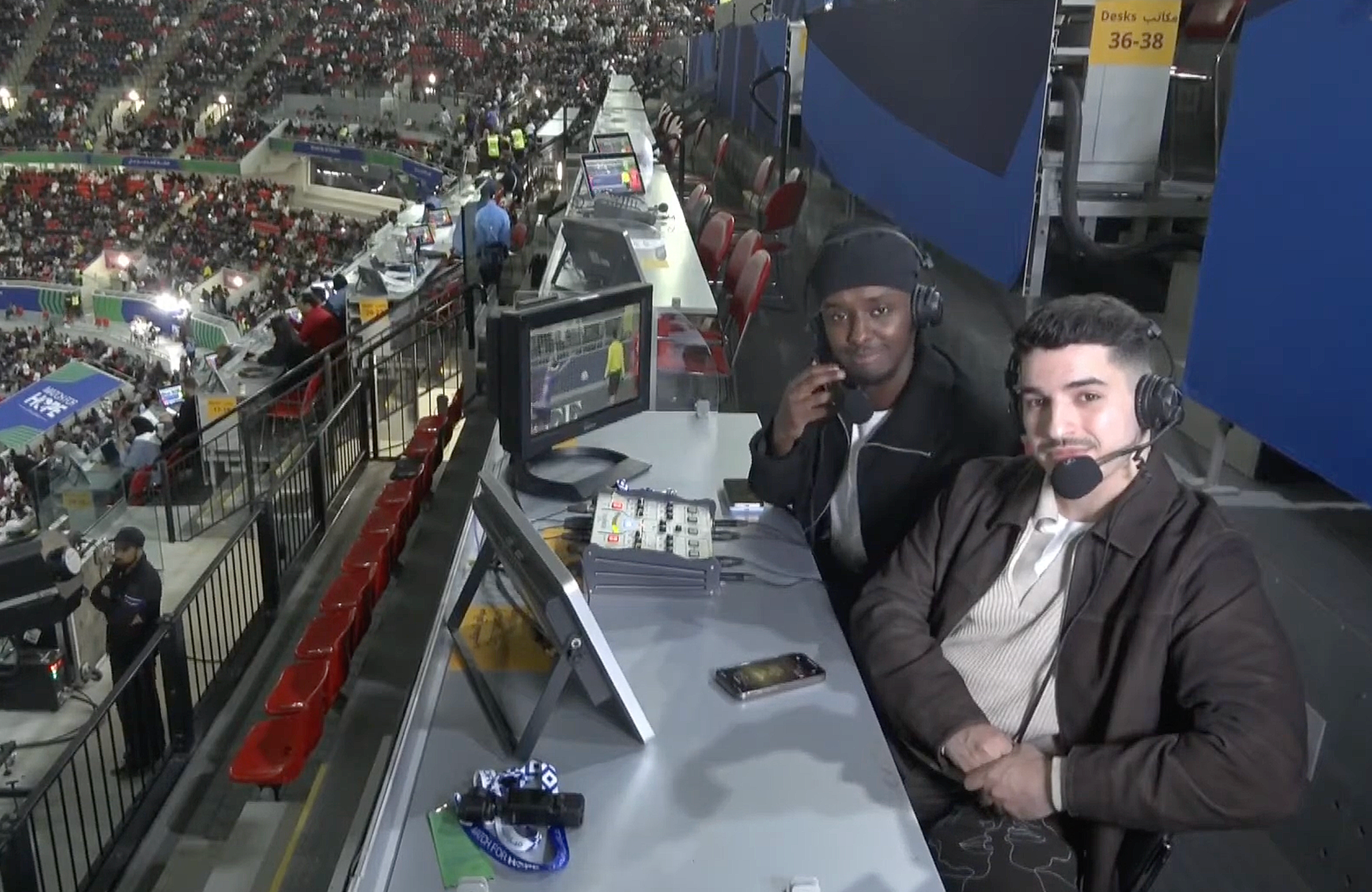 High above the pitch, Lyes and Abz delivered a commentary performance that matched the chaos unfolding below.